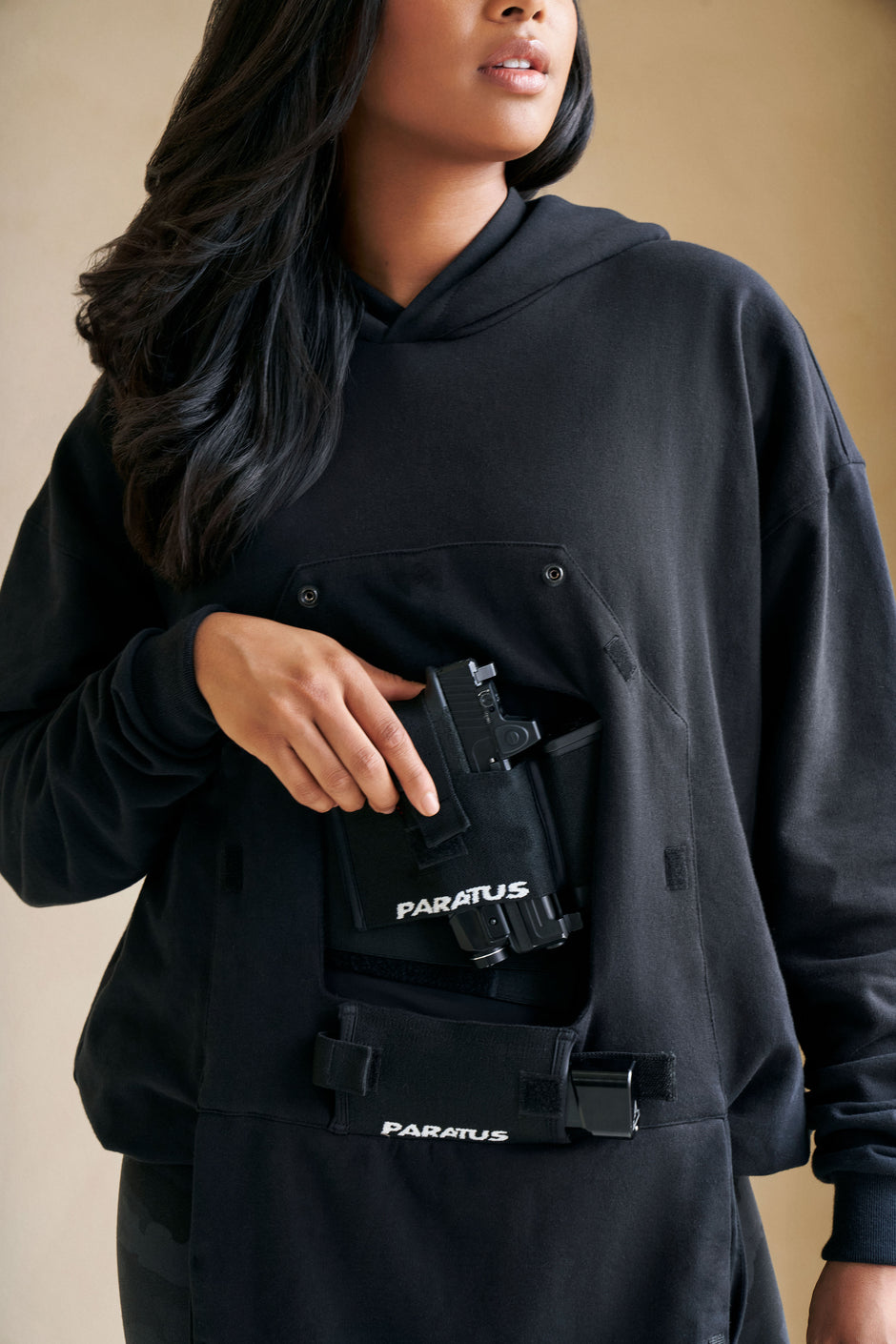 The Paratus technology combines the comfort of a bellyband with the capability for a consistent sub-second draw, similar to that of an appendix inside-the-waistband holster. Also, this garment is designed as a single unit, where multiple components are seamlessly integrated into one piece.